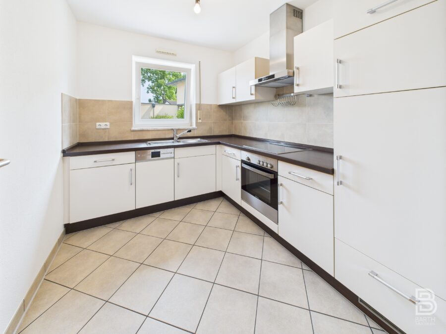 Die ca. 80 m² Wohnung besteht aus einem Flur, zwei Schlafzimmern, dem Wohnzimmer, der Küche und einem kleinen Abstellraum. Das helle Tageslichtbad mit bodengleicher Dusche, WC und Waschbecken runden das Platzangebot ab. Zudem steht ein Waschmaschinenanschluss im Bad zur Verfügung. Die Wohnung ist mit Parkettboden in allen Wohn- und Schlafräumen, hellen Fliesen im Badezimmer und der Küche, sowie weißen Kunststofffenstern ausgestattet. Vom Wohnzimmer aus gelangt man auf die schöne Terrasse und in den kleinen Garten, mit Südausrichtung. Die Einbauküche ist im Mietpreis enthalten. Zur Wohnung gehört außerdem ein Kellerabteil, sowie ein Kfz-Stellplatz.