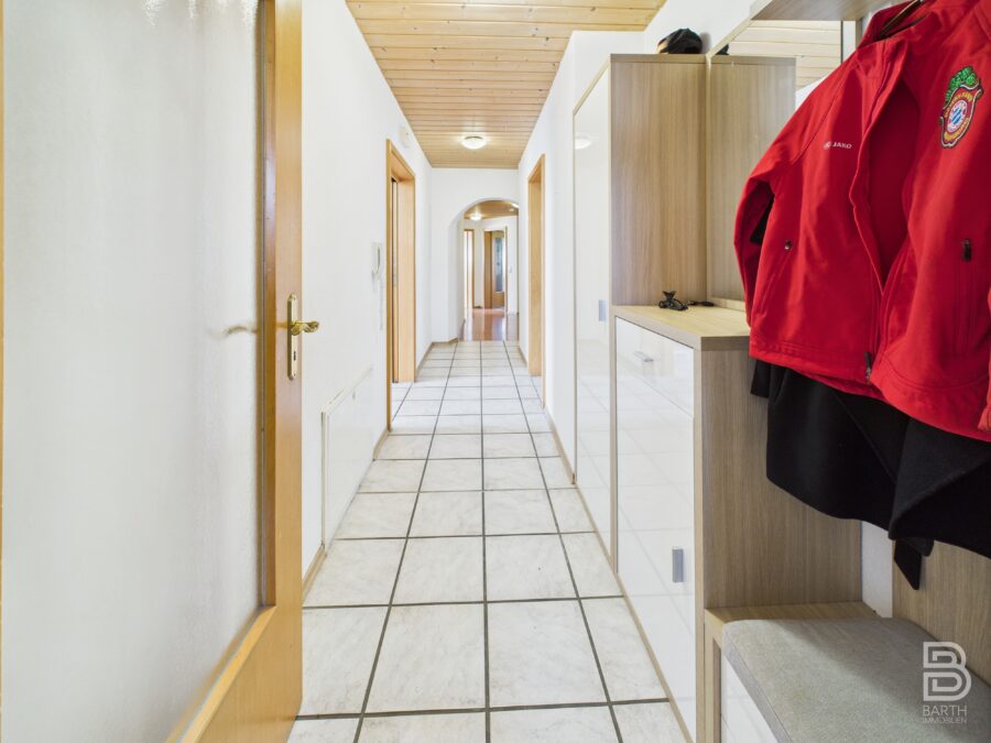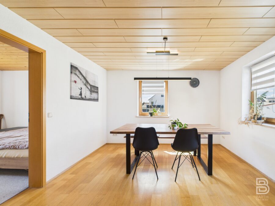 Die geräumige 6-Zimmer-Wohnung liegt im 1. OG eines Zweifamilienhauses aus dem Jahr 1960, in einer ruhigen Seitenstraße von Abensberg.